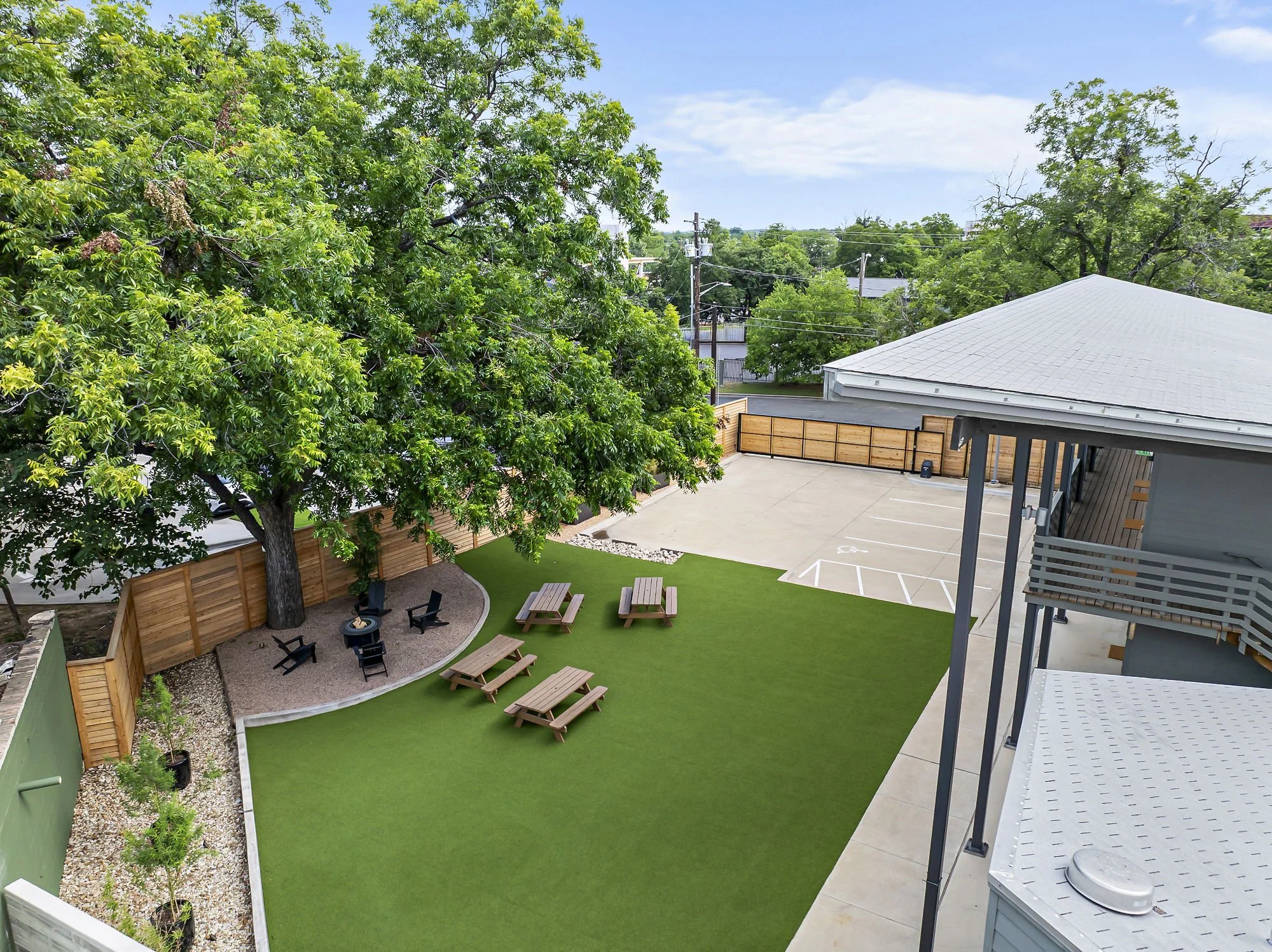 Host a dinner, shower, or reunion. Our turfed lawn and communal spots are perfect for soaking up the Austin sunshine in a laid-back, modern setting.